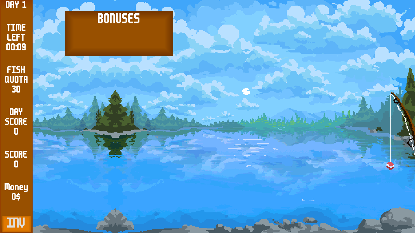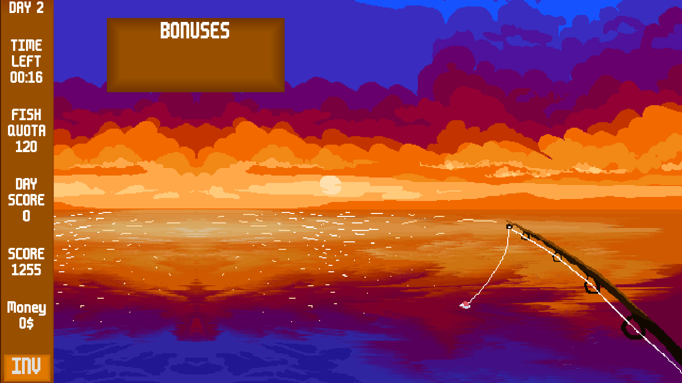 You can also access the shop to upgrade the score multiplier or the fishing rod, which increases the area of catching for the fish.